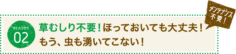 防草シートを下地で敷くから、雑草が生えてこない!下地作りから確かな施工なため、ほとんどメンテナンスフリー。
