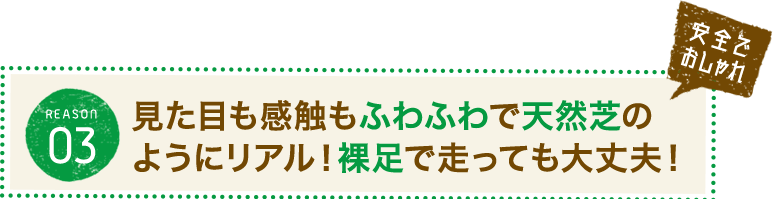 お子様からお年寄りまで安心して歩いて頂けるため、天然芝よりも安全です。