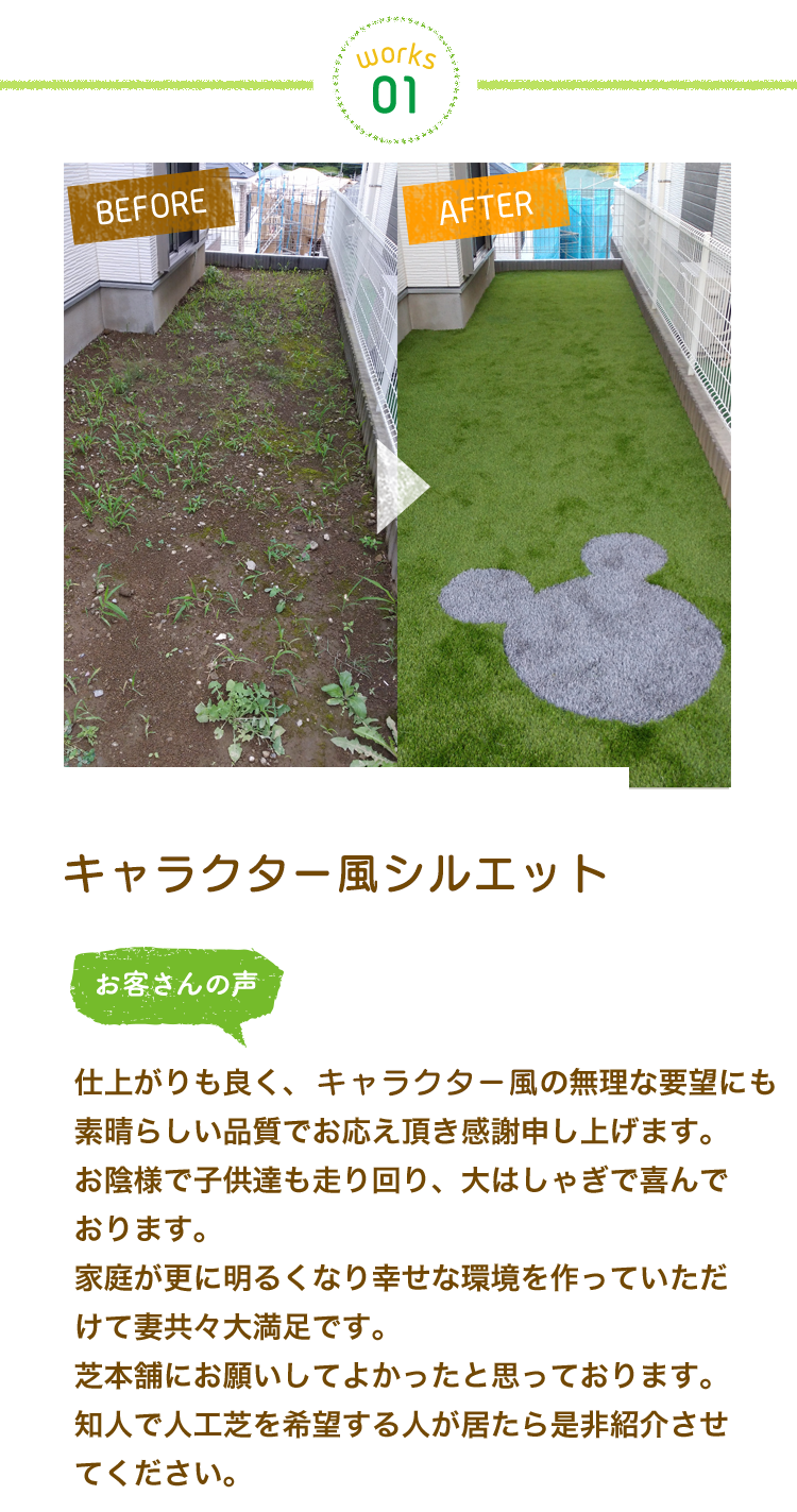 選び抜いたこだわりの素材を使っています。人工芝の材料選びから施工後のフォローまで、責任を持って行っております。