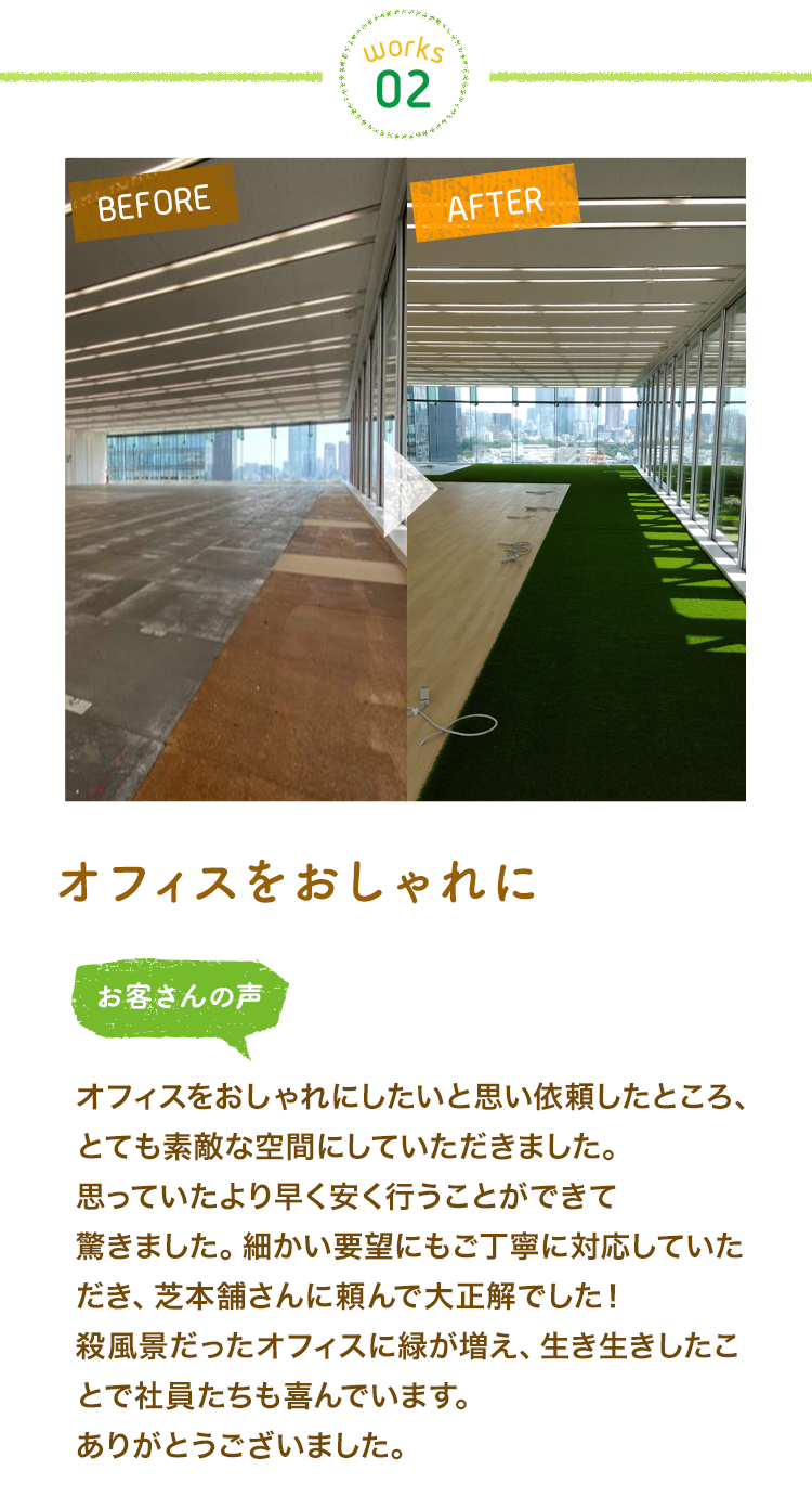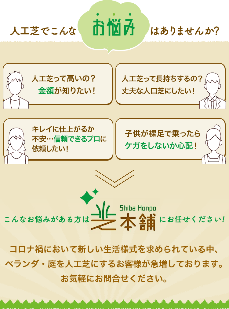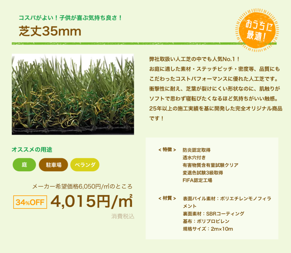 私たちは高品質な人工芝をたくさんの方に提供したいという思いから、高品質で自身の商品をお求めやすいお値段で販売しています!